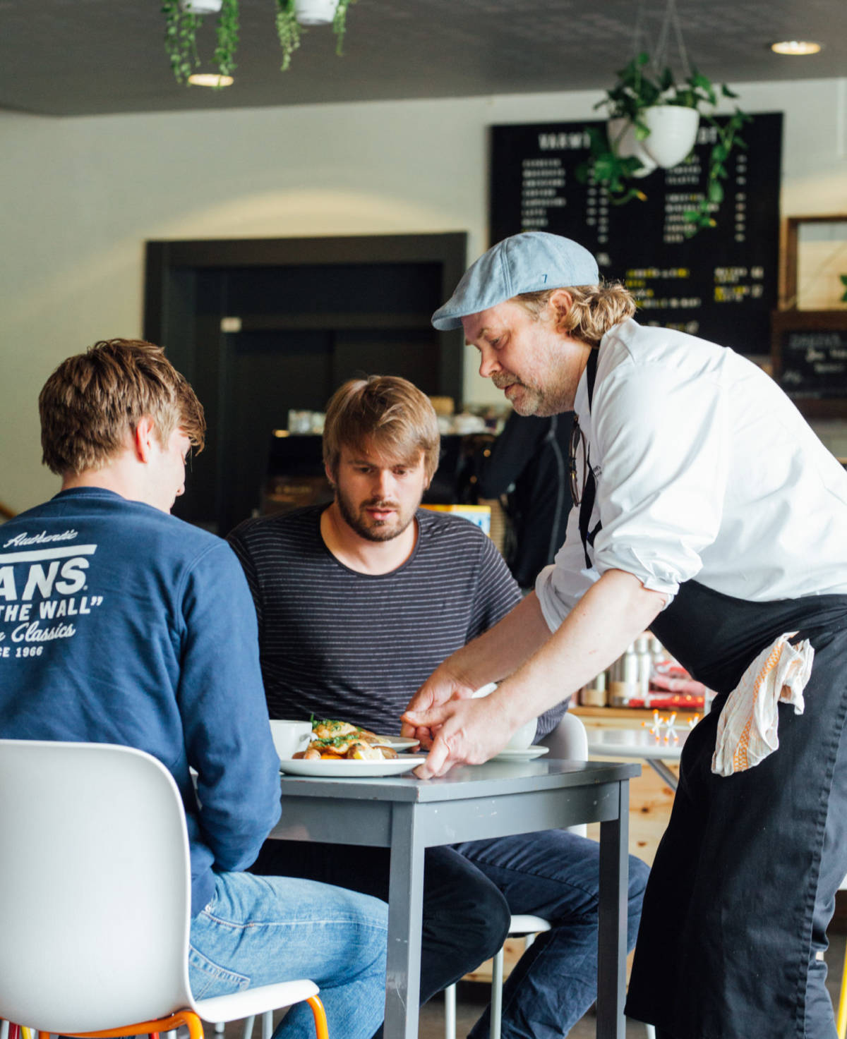 En god grunn til å besøke Vitenparken er vår kafé. Her kan du nyte morgenkaffen på vei til jobb eller spise en deilig lunsj med kollegaer og venner. Du kan også booke et selskap med servering av mat og drikke til dine gjester. Kjøkkensjefen vår heter Hafsteinn Snæland. Han og resten av kokketeamet lager nordiskinspirerte retter og menyen skifter hver uke, ettersom hva sesongen har å tilby. I tillegg til kafé driver vi vårt eget mikrobryggeri og en stor grønnsakshage.
