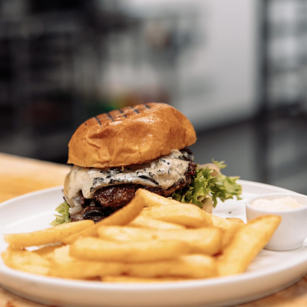 Hver fredag kl. 15.00–17.30 serverer vi våre populære burgere, servert med munnvannende fries og hjemmelaget aioli (kaféen er åpen til kl. 18.00).