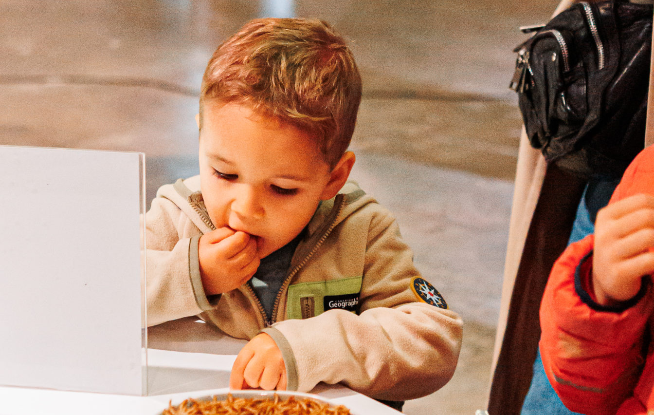 Som vitensenter kjent for spiselige insekter har vi en stasjon der barn og voksne kan smake – og lære om klima- og ernæringsfordeler. Vi introduserer også plantebaserte protein-snacks som fremtidsmat, for å lære bort bærekraftig forbruk og hvordan fremtidens kosthold kan se ut.