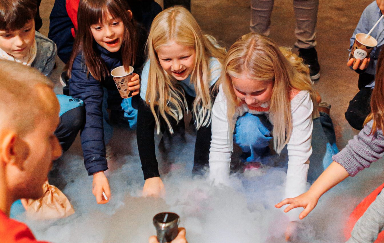 Vår formidler Frederic Lindboe engasjerer publikum med vitenshow som kombinerer humor, energi og læring for både barn og voksne. I tillegg tilbyr vi et bredt spekter av kodeaktiviteter, fra Bit:Bot til Sphero, og interaktive installasjoner utviklet internt gjennom vårt datterselskap Inspire to Action – mest kjent er Brølepanteren.